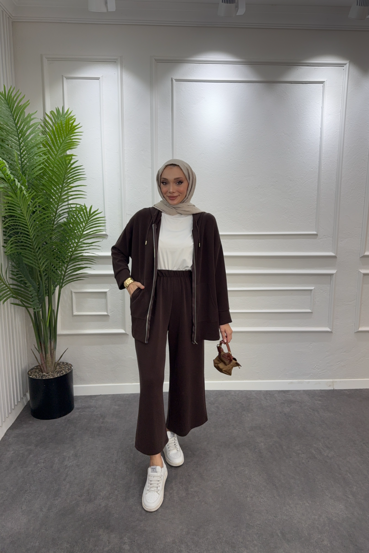 Fermuarlı Oysh Takım - Kahve