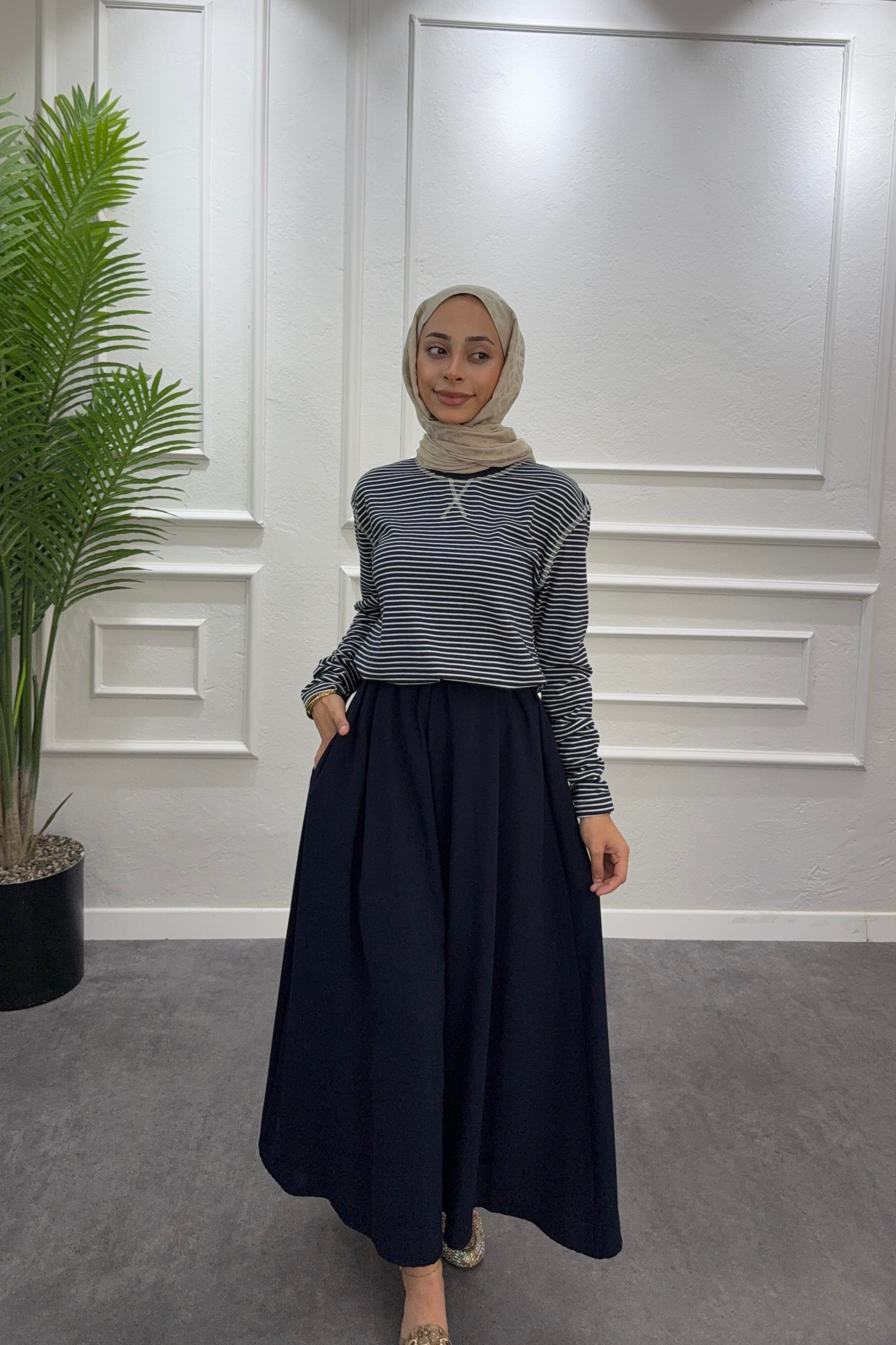 Krep Dökümlü Etekli Pantolon - Lacivert